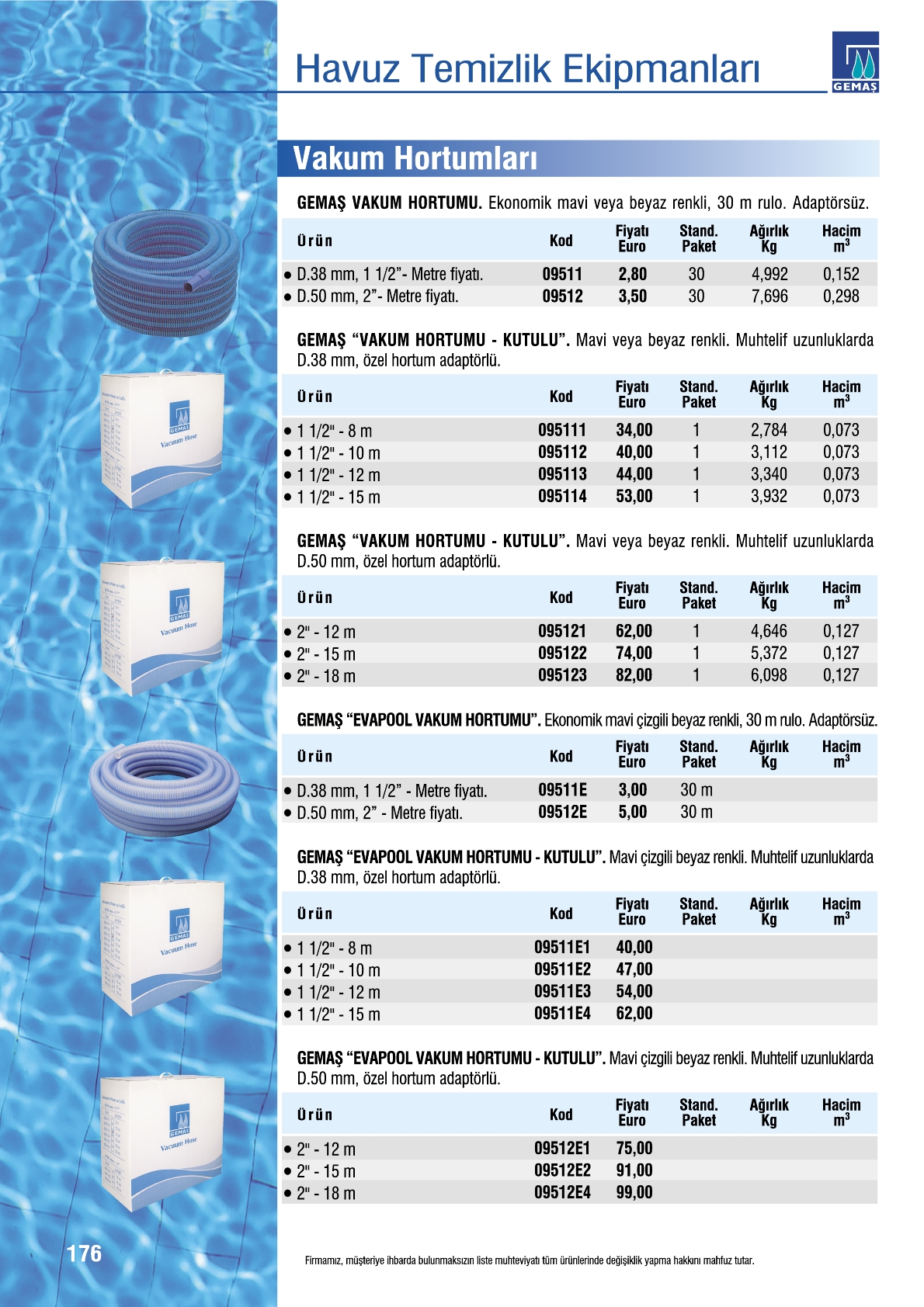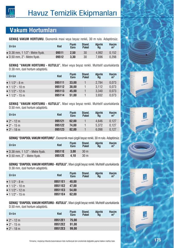 Mavi veya beyaz renkli. Muhtelif uzunluklarda 1½", D.38 mm özel hortum. Adaptörlü.